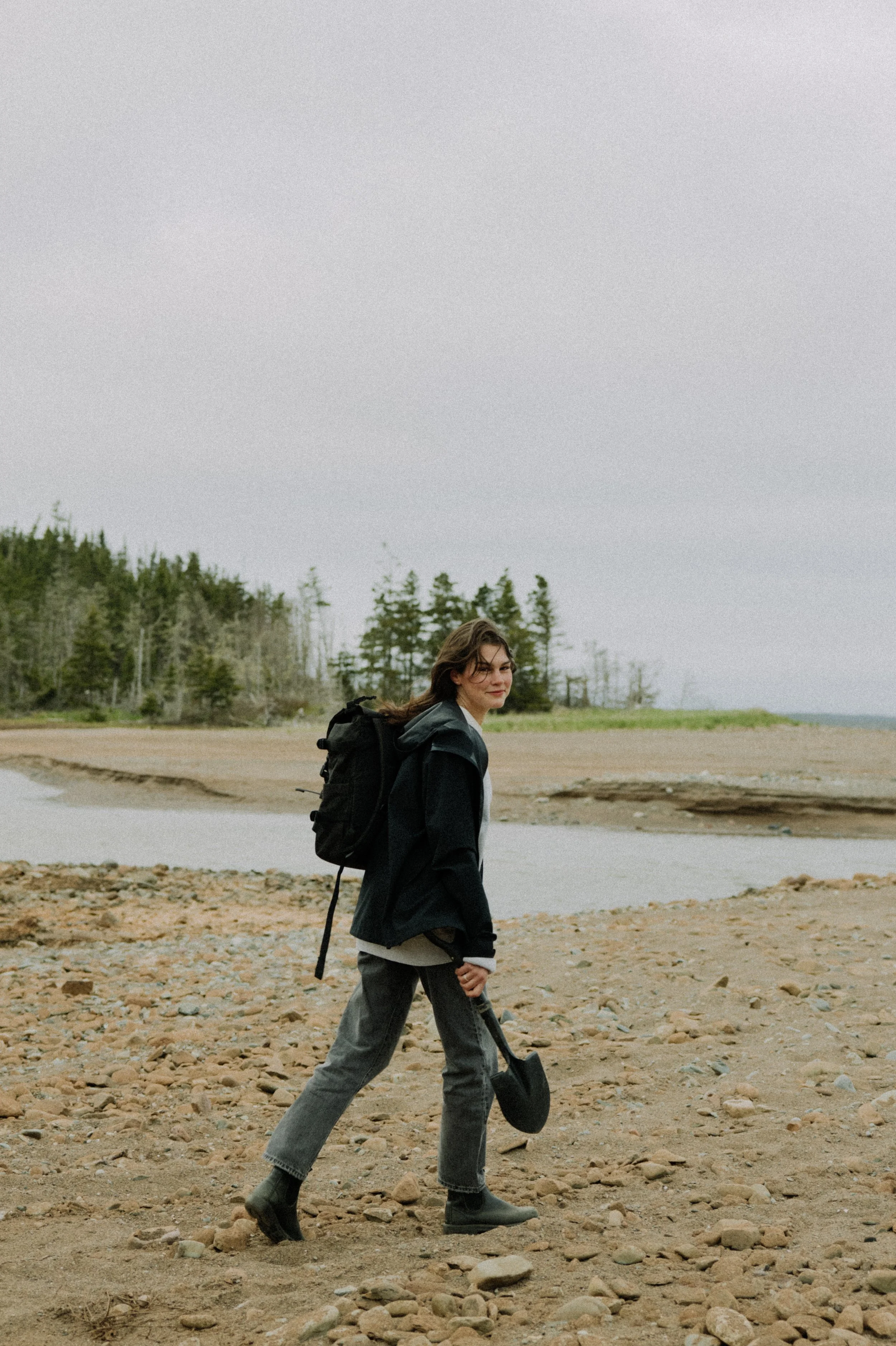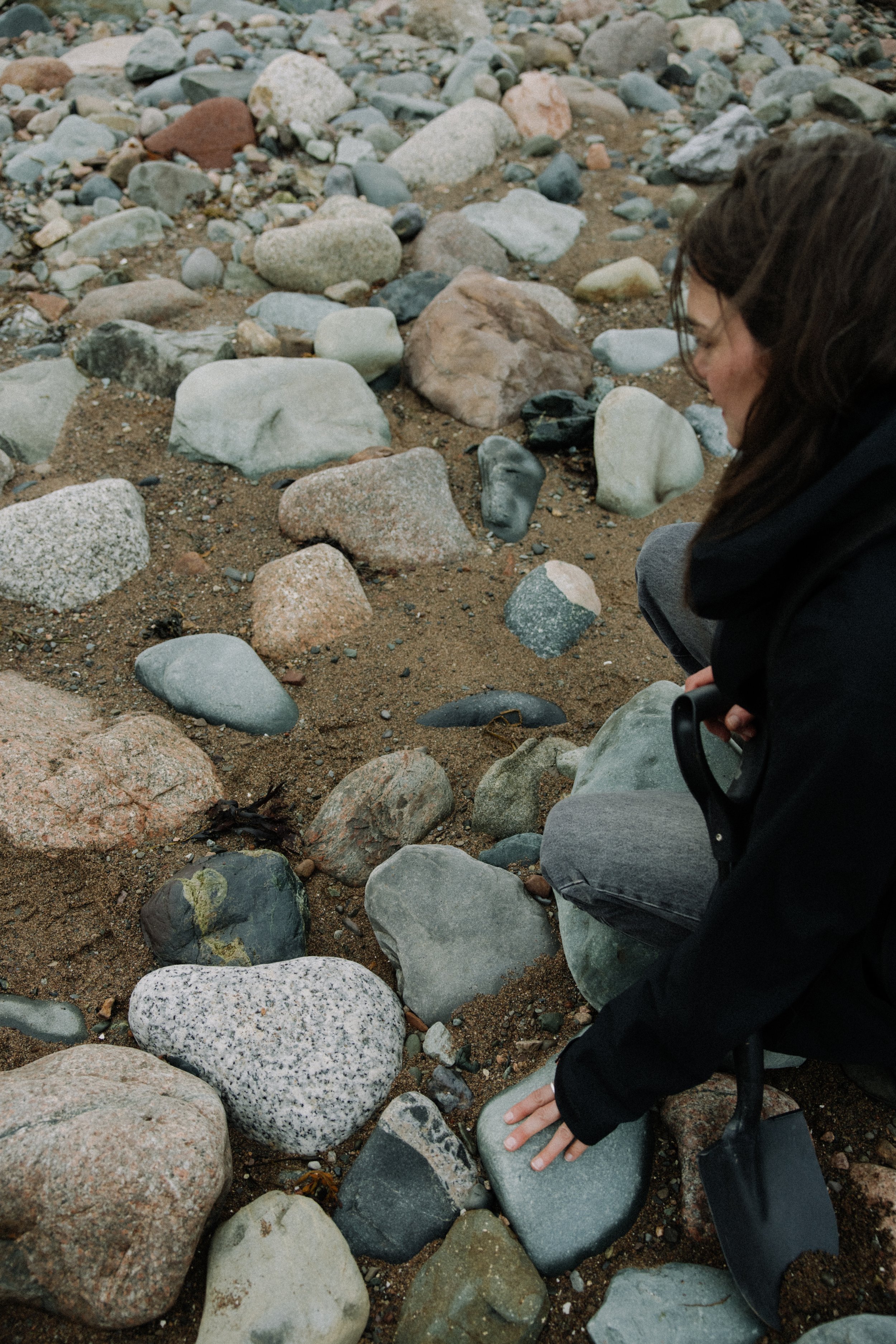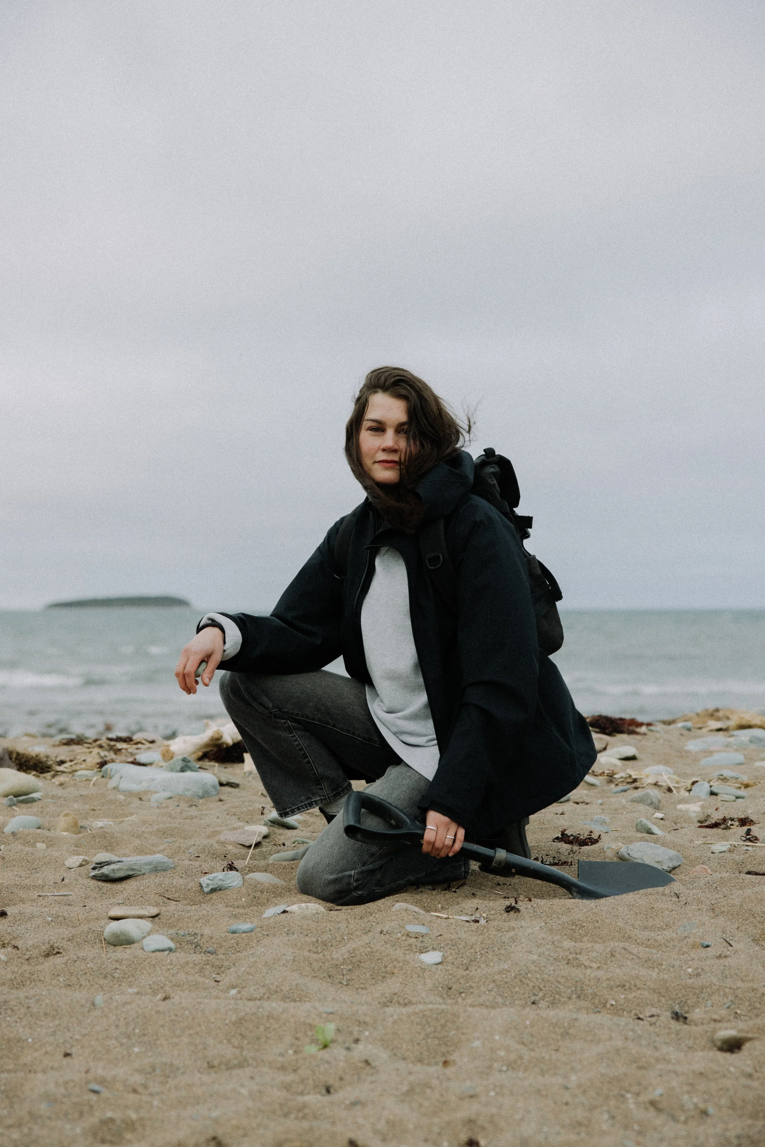 Unfazed by November winds and the dirt under her feet, Catherine roamed the beach collecting stones, clay, and other materials for her work—moments of attentive research that naturally led into our conversation about her practice.