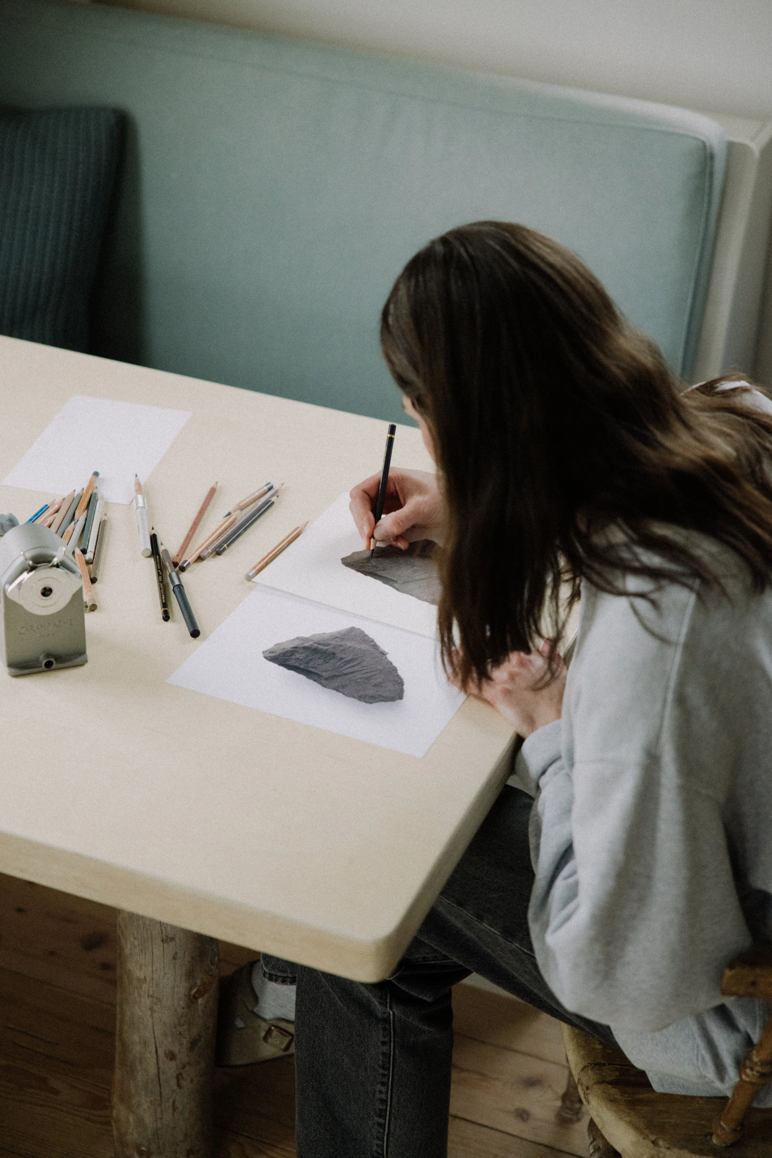 The days usually began with simple gestures, such as making coffee, followed naturally by a moment of writing. They then filled with drawing sessions, walks along the ocean with photography, stone collecting, or reading—each day unfolding differently, depending on my mood.