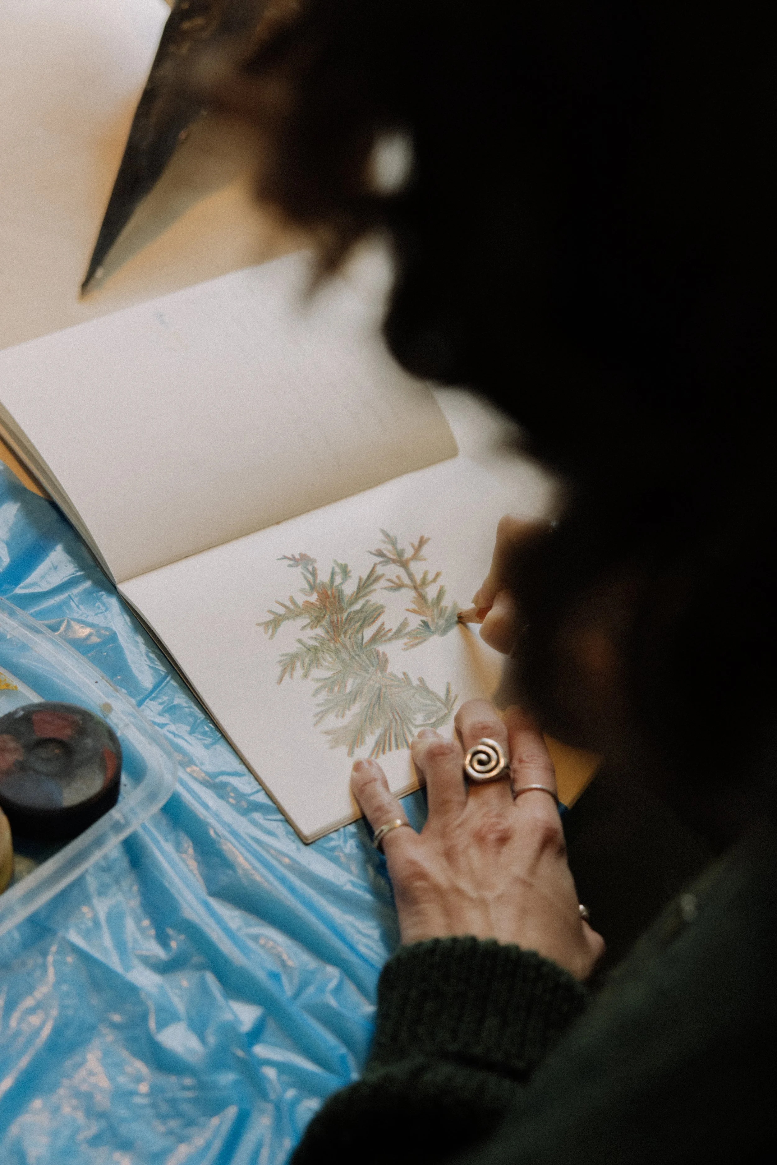 I wake up naturally, without an alarm. I prepare my hojicha tea and go out for my little morning round. I make a few observational drawings and record colours in my notebook.